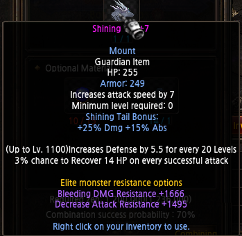 * **The higher the level of your mount, the higher the success rate when improving the mount.**